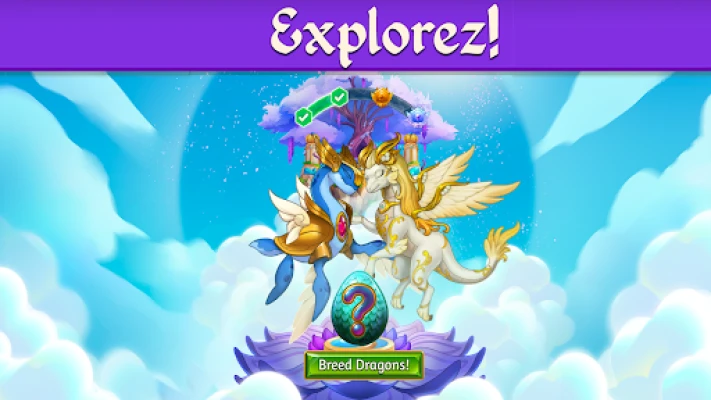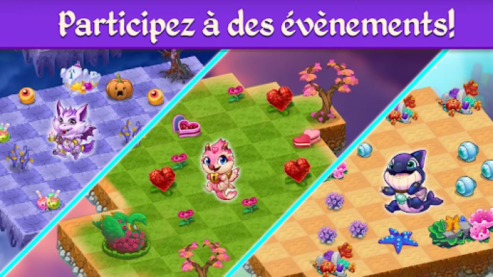 L'art de la fusion est au cœur de votre quête. Faites glisser et combinez trois éléments identiques pour révéler des objets d'une valeur supérieure, qu'il s'agisse de plantes luxuriantes, de structures mystiques, de pièces d'or ou d'étoiles tombées du ciel. Chaque union d'essence de vie libère une puissante énergie régénératrice, essentielle à la guérison du monde. Mais c'est en associant des œufs que la magie opère véritablement : assistez à l'éclosion de dragons serviteurs, puis guidez-les à travers huit stades de croissance pour découvrir de nouvelles espèces, chacune apportant son aide précieuse à votre camp en pleine expansion.