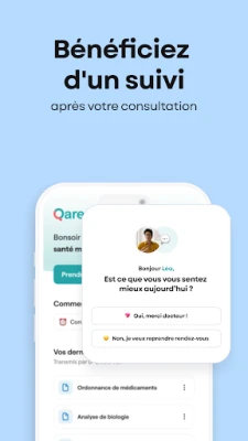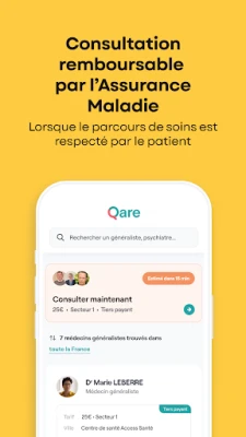 Qare offre un accès rapide à la téléconsultation vidéo. Connectez-vous avec des médecins et spécialistes disponibles en moins de 15 minutes. Profitez d'un avis médical expert dans plus de 23 spécialités, où que vous soyez.